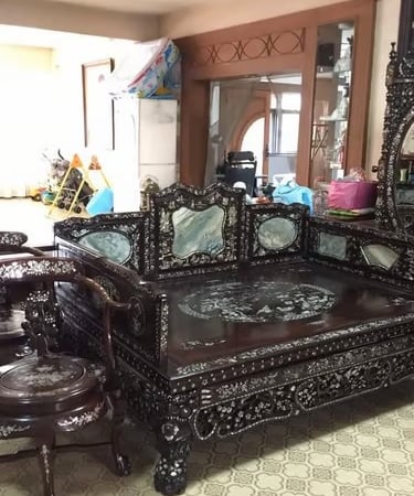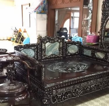 เฟอร์นิเจอร์: ไม้สักเก่า, ชุดรับแขก, ตู้, เตียง, โต๊ะอาหาร, งานมุก, ของโบราณ
